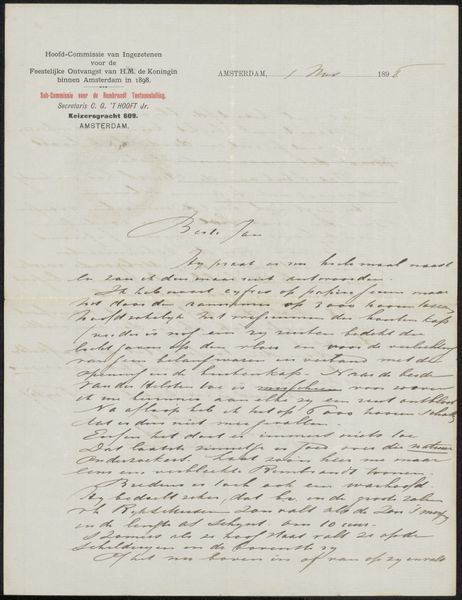 Curator: Okay, so we're looking at "Brief aan Jan Veth," potentially from 1898, an ink drawing on paper. Editor: Yes, exactly. The letter is incredibly intimate—it’s just the artist’s words to Jan Veth. What catches your eye about this work? Curator: Oh, where to even begin! It's less about *seeing* in the traditional sense, and more about *listening* to the echoes. The paper itself whispers stories—think of it, held in someone's hand a century ago, confiding thoughts, arguments, maybe even secrets! Do you think about who Jan Veth might be and why he would receive this letter? Editor: Possibly a friend? A colleague? Perhaps someone who’d understand the references in the writing... Curator: Precisely. It's a visual relic, you know? We piece together the fragments of intent. Editor: It's like archaeology with words, trying to unearth meaning from faded ink. Curator: Consider the artistry—the precise loops and dives, the confidence of each stroke. Calligraphy elevated! It reveals the author's character, a snapshot of their mind in motion. Don't you think handwriting itself is its own kind of portrait? Editor: It definitely has a kind of vulnerability about it. It seems much more human to me, almost like meeting the artist, than something digitally rendered, even though I can't read the actual words. Curator: Beautifully put. We learn to *read* not just text, but intent, history. A simple letter becomes a doorway. Editor: It makes you think about what our digital communications will look like centuries from now! Curator: Indeed! Will future generations find poetry in our pixels, I wonder? A fascinating thought to ponder.