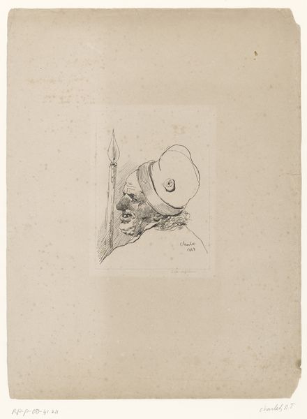 Eugène Verboeckhoven created this small portrait print of Joseph Prudhomme using etching, a printmaking technique that democratized image production in the 19th century. In etching, a metal plate is coated with a waxy substance, through which the artist scratches an image. When the plate is dipped in acid, the exposed lines are eaten away, creating grooves that hold ink. The plate is then pressed onto paper, transferring the image. Look closely, and you can see the subtle lines and textures created by the etching process. The etcher's skill lies in controlling the depth and width of the etched lines, which determines the tonal range and detail of the final print. This process allowed for multiple reproductions, making art more accessible, aligning with the burgeoning middle class and expanding consumer culture of the time. Consider how the relative ease and repeatability of etching contrasts with the unique, painstaking labor of painting, and how this influenced art's role in society.