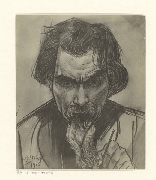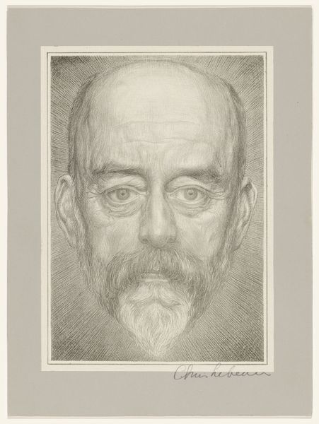 Editor: Here we have Chris Lebeau's "Portrait of Frederik van Eeden," created sometime between 1888 and 1945. It's a pencil drawing, very detailed. The sitter’s intense gaze really jumps out. What do you see in it? Curator: The materiality of this work is fascinating. Look closely at the labor involved: the relentless, repetitive mark-making of the pencil, building tone and form. This isn't just representation; it's a record of a physical process. It begs the question: what drove Lebeau to commit so much time and effort to this detailed portrait? Was it commissioned, or was this about his relationship to Van Eeden? Editor: I hadn’t thought about it like that, more of the artistic skill on display. So you're saying that understanding the labor behind it adds another layer? Curator: Absolutely. The intense gaze you mentioned - think about how many individual lines, how much time, it took to capture that intensity. Then consider the social context: was Lebeau elevating or scrutinizing his sitter? The very act of portraying someone is inherently linked to power dynamics and, here, the economic exchange implied by artistic patronage or, perhaps, the more intimate exchange of a friendship. Editor: That makes me consider the surface of the paper, too, now. The texture it offers, the graphite deposited layer upon layer... I didn’t consider it beyond the image itself. Curator: Precisely! It moves beyond just likeness. The materiality of graphite on paper, transformed through hours of labor, becomes central to the work’s meaning. We're not just seeing a portrait; we're seeing a testament to a process and relationship mediated through materials and making. Editor: This really changes how I look at drawings. It’s not just the end result, but about labor and social exchanges embedded in the piece itself. Thank you! Curator: And for me, your reaction underlines how our experience is always influenced by how art is distributed, displayed and consumed.