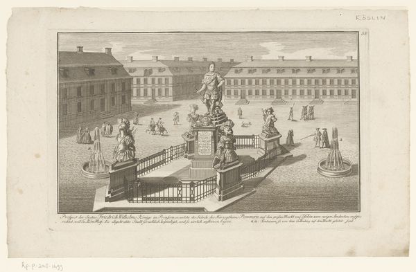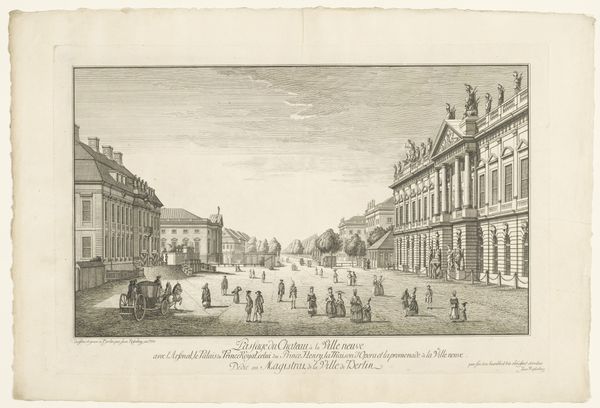 Editor: So, this is Pieter Schenk's "Gezicht op Huis de Voorst van de zijkant," made around 1700. It seems to be an architectural sketch rendered with ink on parchment, and I’m struck by the precise, almost clinical depiction of this estate. What’s your take on it? Curator: I see a fascinating record of labor and resources invested in the creation of both the landscape and its representation. Notice the meticulously rendered garden—the pen work suggests a significant amount of time and skill. Consider also the parchment itself, derived from animal skin; its production involved a whole chain of labor. Editor: So you're saying the artwork itself is evidence of social and economic structures at play? Curator: Precisely! This isn't just a pretty picture. It speaks volumes about land ownership, leisure, and the material means available to the Dutch elite in the 18th century. How does the 'mechanical pen drawing' technique reinforce this idea for you? Editor: I guess the controlled lines of the architecture, produced perhaps with ruling instruments, emphasizes order, wealth, and a desire for control over the natural world? I hadn't considered it that way, focusing on how the material impacted meaning. Curator: Think about how this contrasts with sketchwork, or other less controlled approaches. Everything, from the parchment itself to the final mark on the page, carries meaning. Editor: So, looking at Schenk's piece through this material lens helps unpack a much richer history of labor and resources. Thanks, I never really thought about the support material, or the instruments, in this kind of work before. Curator: It's a perspective that really brings art history to life. Seeing beyond the image unlocks hidden narratives about power and production.