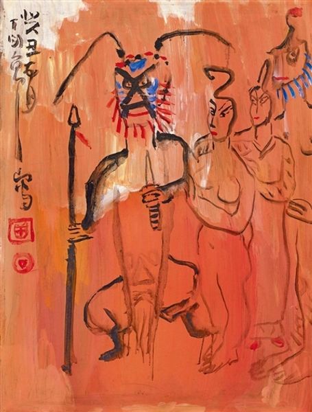 Louie H. Ewing made this print, titled "Pueblo Pictograph," at some point in the mid-20th century, borrowing imagery from indigenous art to create something new. Ewing was working at a time when American artists were looking to indigenous cultures for inspiration, often reinterpreting traditional forms for a contemporary audience. The image shows a series of stylized figures and geometric shapes, reminiscent of the rock art found in the Southwestern United States. But while it references an ancient tradition, we can see it through the lens of mid-century modernism, with its clean lines and simplified forms. The early and mid-20th century saw the opening of various museums and galleries dedicated to Native American art, contributing to its visibility and appreciation. However, this institutionalization also led to questions about cultural appropriation and the representation of indigenous voices. To understand this artwork, we might look at the history of Native American art institutions, the biographies of individual artists, and the social and political context of the time. Art history is not just about aesthetics; it's about understanding the complex interplay of culture, history, and power.