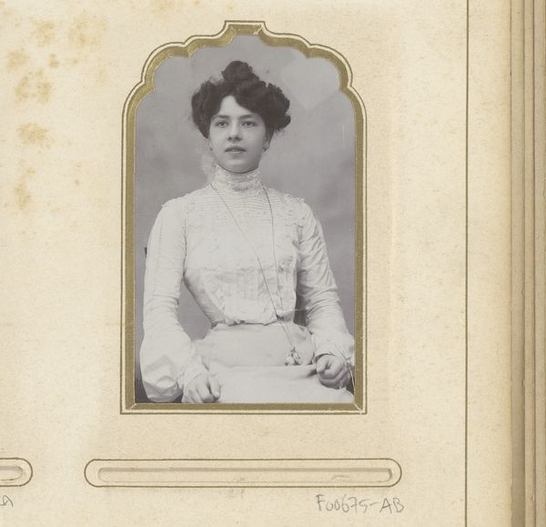 This is a portrait of a woman in a white dress, made by E. v.d. Kerkhoff. In the late 19th century, photography offered new ways of seeing and representing oneself, especially for women. This portrait, likely taken in the Netherlands, shows a woman standing confidently in what looks like a studio setting. The white dress, while fashionable, also conveys a sense of purity and status, reflecting the social expectations placed on women at the time. The rise of photography studios created a space where individuals could perform their identities, carefully curating their image for public consumption. The art institutions of the time helped shape the artistic and cultural values that dictated the production and reception of such images. These photographs capture a moment in time, reflecting the aspirations and social norms of the Dutch upper class. Historical archives, fashion studies, and sociological research can help us understand the role of photography in shaping identity and social status during this period. By considering the social and institutional contexts, we can uncover deeper meanings embedded within this image.