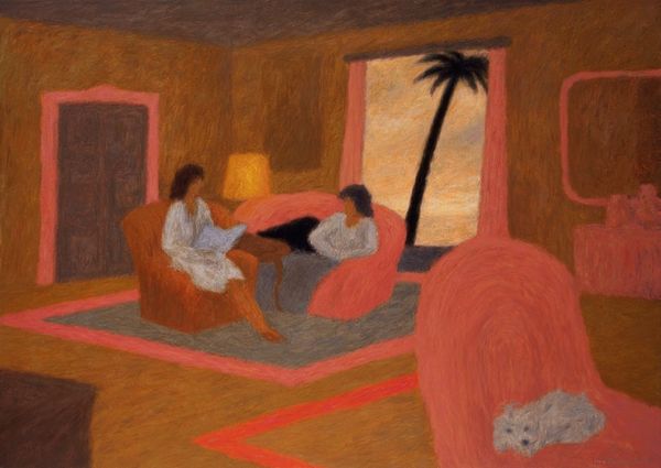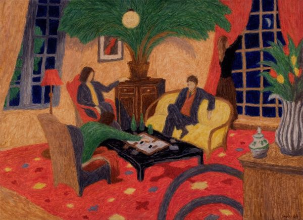 Iwo Zaniewski painted 'A Game in the Living Room' sometime after his birth in 1956. The work seems to capture a moment of bourgeois leisure: three figures are relaxing in a well-appointed room. But what does the title 'A Game' suggest? Perhaps that leisure itself is a kind of game, one played according to certain rules. The scene suggests a certain tension. The almost lurid color scheme – yellows, reds, and blacks – amplifies the latent unease. In Poland, where Zaniewski was born, the institutions of art have long been intertwined with political power. During the Communist era, artists were often forced to conform to the demands of the state. After the fall of Communism, artists have had to navigate a new set of pressures, those of the global art market. By studying this and related works alongside historical accounts, exhibition reviews, and artists' statements, we can better understand the complex social forces that shape artistic production. Ultimately, the meaning of art is always contingent on its social and institutional context.