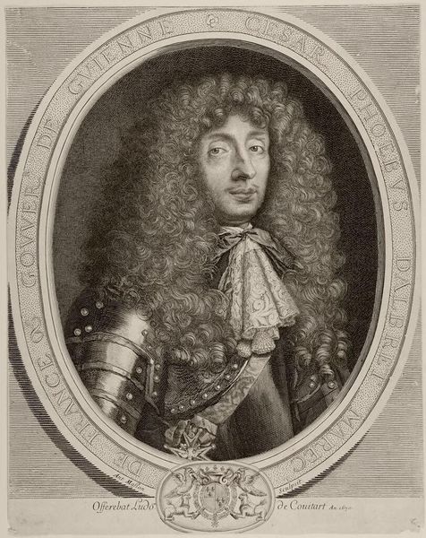 Hendrik Causé etched this portrait of Georg Wilhelm, Duke of Brunswick-Lüneburg, sometime in the late 17th century. The Duke’s armor speaks of a martial role, yet it is the grotesque mask at his shoulder that draws our immediate attention. Such masks, common in Renaissance armor, aren't merely decorative. Recall the Gorgon Medusa, whose petrifying gaze was affixed to shields to ward off enemies. These masks, too, were meant to instill fear and offer protection, echoing ancient apotropaic devices—gargoyles on Gothic cathedrals, or the protective visages on Greek temples. The Duke’s mask is a psychological mirror. The ancients believed in sympathetic magic, where likeness conveyed power. By incorporating this terrifying visage, the Duke absorbs some of its power. This interplay of fear and protection, aggression and defense, engages us on a primal level, stirring subconscious memories of vulnerability and strength. Thus, the image resonates, connecting us to a long, cyclical history of human efforts to confront and control the darker aspects of existence, with each era reinterpreting and adapting these potent symbols.