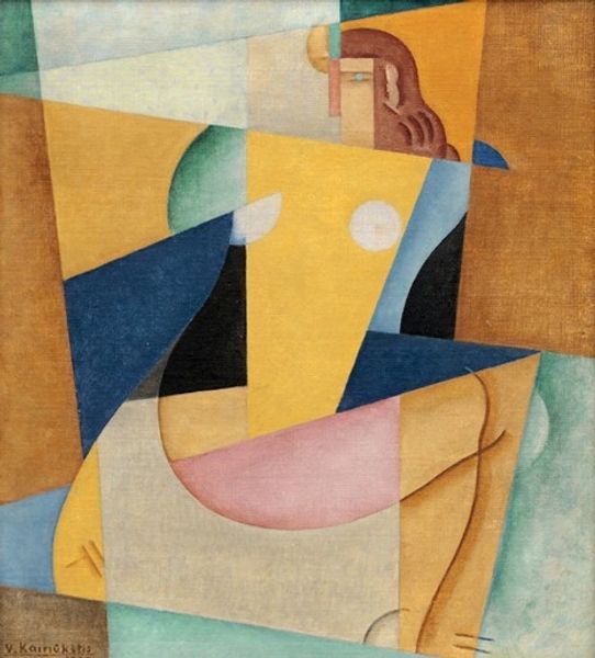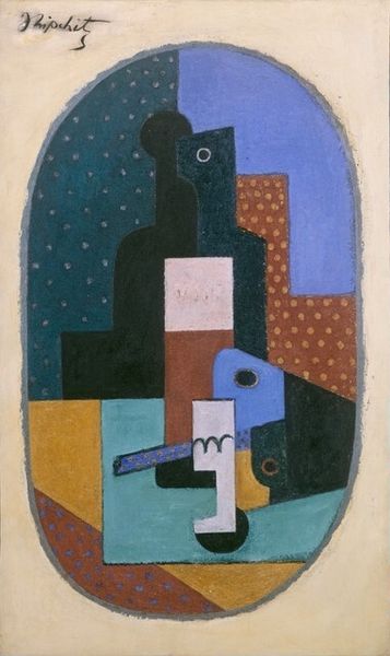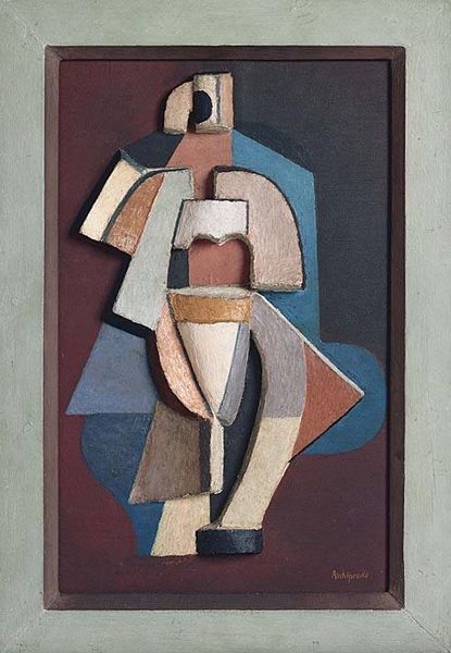 Editor: So, this is Willi Baumeister’s "Wall Picture with Metals," created in 1923. It’s a fascinating collage with diverse materials, seemingly acrylic on canvas, or maybe mixed media? There is definitely paste-up work in this. What jumps out at me is how tactile it appears. The geometric shapes, the varying textures… what do you make of this piece? Curator: Its construction immediately speaks of the avant-garde’s challenge to traditional painting. The choice of industrial materials and the paste-up technique over traditional brushstrokes are significant. What's important here is the artist’s labor - Baumeister is physically constructing this image. Think about the social context: What does it mean to move away from representation toward pure material engagement in post-war Germany? Editor: That makes me think about the ‘Wall Picture’ title. Is it challenging the idea of fine art versus decorative craft, perhaps blurring those boundaries? Curator: Precisely. This isn’t about illusion; it's about presence. How do the specific textures—the smoothness of the paint versus the possible roughness of applied metals, for example—impact our perception of space and depth? The artist’s hand, his process of building and arranging these materials, becomes the very content of the artwork. How does it resonate with the social ideas? What statement is Baumeister trying to create? Editor: It really makes you consider the value placed on artistic labor, the act of *making* rather than just depicting. Thanks, I’ll definitely look into that context. Curator: And remember, look beyond the surface. Consider the socio-economic implications of these material choices. I think it reflects how one can reconstruct ideas in society as well.