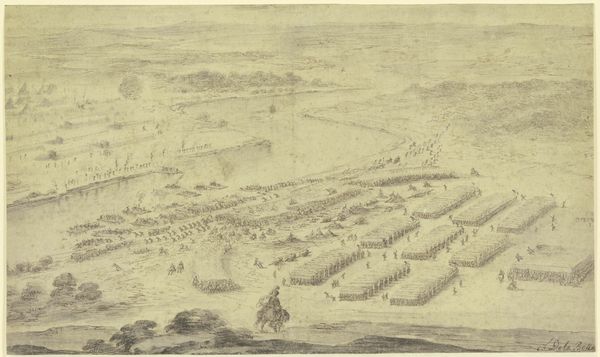 This anonymous engraving depicts the arrival of Maria de' Medici in Amsterdam. The print serves as a document of a specific historical event but also reflects the broader social and political dynamics of the Dutch Golden Age. Made in the Netherlands, the artwork presents a bird's-eye view of the procession, emphasizing the scale and grandeur of the occasion. The city of Amsterdam looms in the background, symbolizing the economic and cultural power of the Dutch Republic at the time. Consider the institutional context: prints like these were often commissioned to commemorate important events and promote the image of powerful figures. The arrival of Maria de' Medici was a significant event, and this engraving captures not only the spectacle but also the political implications of such a visit. To better understand this image, we can turn to historical documents, such as city records and diplomatic correspondence, to reveal the social and institutional forces that shaped its creation. Ultimately, this artwork reminds us that art is always embedded in a specific social and institutional context, and its meaning is contingent on those factors.