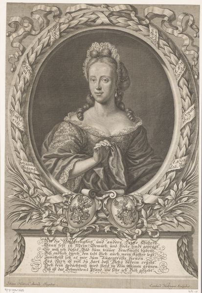 This is a portrait of Maria Elisabeth Völcker, made by Johann Christoph Boecklin sometime between 1670 and 1709. It’s an engraving, meaning that the image was incised into a metal plate, likely copper, with a tool called a burin. Ink was then applied to the plate, and the excess wiped away, leaving ink only in the incised lines, before being printed onto paper. Engraving was a highly skilled, labor-intensive process, requiring years of training. The density of fine lines creates subtle tonal variations, bringing Völcker to life. Note the elaborate details of her dress, hair, and the lettering that encircles the portrait. Engravings like this were often made in multiples, allowing for the wider dissemination of images. Consider the social context: printmaking was crucial to the spread of knowledge and ideas, also playing a significant role in shaping public opinion and cultural trends. So, next time you encounter a print, remember the layers of skill, labor, and social context embedded within its lines.