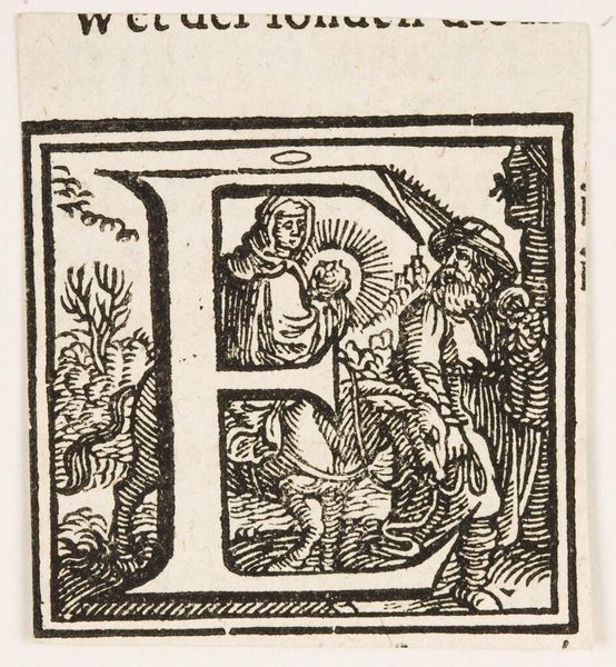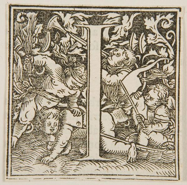Editor: Here we have the block print "Letter I" by an anonymous artist. The linework is incredible! What statements about literacy and learning in society do you think this piece makes? Curator: The image immediately positions literacy as a pursuit of the learned, likely wealthy, classes. Consider the setting: the scholar indoors, surrounded by books, in contrast to an illiterate peasant working outdoors. Editor: So, it's about access to knowledge and the privilege that comes with it? Curator: Exactly. The image becomes a commentary on the social hierarchies reinforced by literacy and its control. What do you make of the detail in the scholar's clothing? Editor: That the scholar has access to finer materials, making the social commentary even more evident. Thanks for sharing that perspective! Curator: My pleasure. I've found it helpful to analyze the historical role of the image in shaping social perceptions.
