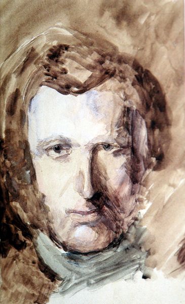 John Ruskin, known for his writing on art, architecture and society, painted this self-portrait with watercolor on paper. Watercolor is a very fluid medium, typically associated with lightness and transparency. But look closely, and you can see that Ruskin has built up many layers of pigment, especially in the darker areas of his face and clothing. This would have required time, patience and careful observation. The watercolor technique, usually favored for its swiftness, here becomes a tool for deep study. Ruskin was a fierce critic of industrial capitalism, and a great champion of handcraft. In his view, only thoughtful labor, done at a human pace, could yield beauty. Perhaps, in this self-portrait, he was holding himself to the same standard. His attention to detail mirrors his broader commitment to the value of the individual worker. So the next time you encounter watercolor, consider the possibilities of the medium but also what making something slowly can mean.