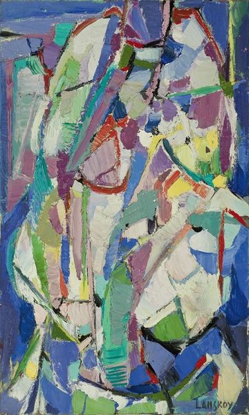 Curator: Hryhorii Havrylenko’s “Composition,” painted in 1963, presents us with an intriguing example of mixed-media work incorporating acrylic paint, currently held in a private collection. What's your initial reaction to this piece? Editor: It’s certainly...vibrant. The use of color is immediately striking, though the composition feels a bit disjointed, almost deliberately naive in its arrangement of forms and patterns. Curator: That perceived naivete is a crucial entry point. Given the historical context of 1963, we might see echoes of post-Stalinist Ukraine. The turn toward abstraction allowed artists like Havrylenko to explore subjective experiences in a way that figuration could not. The very act of "composing" became a subtle act of defiance, reasserting individual expression within a system that had long suppressed it. Editor: I agree that the context is vital. But let’s think about the materiality – acrylic, becoming increasingly available at the time, allowed for that vibrant palette, and probably enabled him to layer and rework areas, producing a density, and even the feeling of roughness, not usually found in more traditional tempera techniques. Do you think there's also a reference to folk art here? Curator: Absolutely. I believe that the geometric patterns and flattened perspective can be read as referencing traditional Ukrainian folk motifs, subtly woven into an abstract framework. There's a distinct layering here not just of medium, but also of cultural meaning. It’s as though Havrylenko is creating a new visual language. I also detect elements of figuration embedded in the painting and maybe even a suggestion of portraiture. Editor: Right. It feels almost collage-like; though constructed using paint. The shapes interlock like components. Do you feel there's any reference to an earlier style? Is it trying to do something entirely new or looking back as well? Curator: The intermingling of vibrant, somewhat flattened forms suggests that the work stands at the nexus of Abstract Expressionism, and hints of what we recognize today as the Pop-Art aesthetic. It may well represent an embrace of Western modes of expression following years of suppression under Soviet realism, with Havrylenko integrating themes associated with gender, identity, race and broader political undercurrents Editor: Ultimately, reflecting on the techniques and context around "Composition" enables us to gain a renewed perception of how art forms materialize under specific conditions. Curator: I would only add that understanding these artistic strategies allow for recognition of what the paintings and related cultural forms signified at this time and what significance is conveyed by them today.