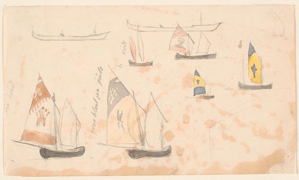 Curator: The Rijksmuseum holds this pencil drawing from Willem Bastiaan Tholen titled, “Diverse studies van boten en enkele figuurstudies.” It’s thought to have been created sometime between 1870 and 1931. Editor: There's a stillness here despite all the implied movement of the boats. A hazy, almost dreamlike quality... it's quite serene. Curator: Yes, the texture created by the pencil lends itself to that hazy feeling. It also highlights the labor involved in creating each individual study on the page. Consider the numerous compositional tests on a single sheet, indicative of a direct engagement with his materials. Editor: I'm thinking about maritime labor itself. Who were these sailors? Were they independent fishermen, or part of a larger commercial enterprise? This connects to broader issues of class, and how art often obscures the hands that physically keep things afloat, literally and figuratively. Curator: That's insightful. The way Tholen captures the light playing on the water, reflecting off the hulls, required not only skill but an intimate knowledge of the boats. What sort of labor was needed to keep them in top conditions at the sea, and how might such details affect its impressionistic context? Editor: I find myself thinking about how these sketches also document a specific moment in Dutch history. The late 19th and early 20th centuries were times of massive social change. Were these images possibly intended to romanticize a traditional way of life in contrast to modern industrialization? Curator: It's plausible. What's particularly fascinating to me is Tholen's repeated exploration of the same subject. It is the nature of the raw pencil marks upon the surface of the sheet itself and how they begin to capture the world with this basic medium. Editor: I agree. Ultimately, for me, these studies remind us of the interconnectedness of our past, how historical forces shape seemingly simple scenes. Art is so embedded in these circumstances! Curator: The materiality serves as the foundation, the anchor, grounding this study in tangible, relatable terms of a human working on creating artwork in its simplest and most essential form. Editor: And seeing it all woven into this intimate visual record really transforms my view of the piece.