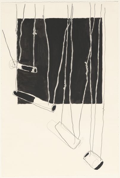 Editor: Here we have Richard Diebenkorn's "Untitled," a pen and ink drawing created sometime between 1955 and 1967. The stark contrast really jumps out – the black ink against the blank page, almost aggressive in its simplicity. It depicts the back view of a nude figure with their left arm raised. What can you tell me about it? Curator: What interests me most is Diebenkorn's use of very simple, readily available materials—ink and paper—to depict the body. The labor involved here is direct and unmediated; we see the hand of the artist so clearly. Consider the social context: mid-century America, a time of increasing industrialization, yet here's Diebenkorn focused on the immediate act of mark-making. It challenges this boundary between mass production and unique artistic creation. What kind of ink do you think he used, and why would that be important? Editor: It looks like it could be India ink, maybe because it's so intense and allows for those very dark, almost solid areas, and those thinner, sketchier lines. So the material dictates the…intensity? Curator: Precisely. It's not just about *what* is depicted, but *how*. How the qualities of ink, its flow, its potential for blotting and bleeding, informed the final product. Also, think about the paper. Was it expensive, archival quality, or just something lying around the studio? The means of production and reproduction! Editor: It's interesting to consider the materials not just as a means to an end, but as active participants in the artwork itself. So the economic conditions matter… the ready availability, perhaps disposability, changes the nature of the work. I'll keep that in mind. Thanks. Curator: Absolutely. And considering the work itself becomes a different experience.