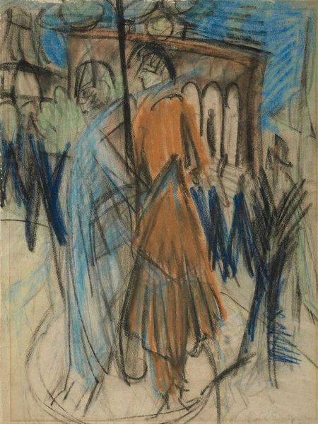 Editor: Here we have Arnold Peter Weisz-Kubínčan’s “Highwayman,” created between 1935 and 1944, using pastels. The loose, gestural lines give it such an ephemeral feeling. How do you interpret this work, especially considering the period it was made in? Curator: Given the timeframe, 1935 to 1944, it's impossible to separate this piece from the rising tide of fascism and the upheavals of World War II. This “Highwayman”, is he a romantic figure, or a symbol of displacement, dispossession, even resistance? Editor: That’s a great point. I was only considering it formally but the social context gives me pause. The pose is so relaxed, almost reclining… yet, you’re right, is that a forced relaxation, maybe the last moment of peace? Curator: Exactly! The medium itself – pastel – speaks to fragility, to something easily disrupted. Consider, too, Kubínčan's own identity, or rather the identities that were imposed upon him under such a regime. Where did he belong in the social order? Was he seen as “other?" The very act of depicting a figure in such a precarious pose could be read as a quiet act of defiance, an assertion of humanity against dehumanization. How does the artistic style add to the message? Editor: The expressionistic style definitely amplifies the emotional weight. The colors feel muted and anxious. I initially missed this, as they blend in harmoniously at first glance, but on closer look they add so much tension. Curator: Precisely. The beauty of art lies in its ability to hold multiple, even contradictory, meanings simultaneously. This piece reminds us that even in times of darkness, the human spirit—and artistic expression—persists, even resists. Editor: That gives me a lot to think about regarding the artist and this period. Thank you for shining a new light on “Highwayman”. Curator: My pleasure, and it illustrates perfectly that art isn't created in a vacuum, it reflects, questions and shapes our world, past and present.