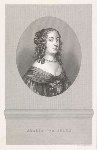 This is Christiaan Lodewijk van Kesteren’s diminutive ‘Portret van een vrouw’, made with etching. The portrait engages us through the contrast of precise linework against softer tonal gradations. Notice how the etcher's careful modulation of line brings forth the woman’s form, creating a delicate balance between light and shadow that animates her presence on the page. In its form and design, the artwork speaks to the tradition of portraiture. The use of etching, with its emphasis on line, allows for a remarkable level of detail, yet also sets up an inherent tension between precision and the subtleties of human expression. The woman, framed by the smooth gradient, appears caught in a moment of quiet reflection, with a gaze that invites prolonged contemplation. Consider how the etching's formal qualities, and the artist's emphasis on line and tone, communicate not just physical likeness but an interiority that transcends time. This elevates the portrait from simple likeness to a site of interpretive richness.