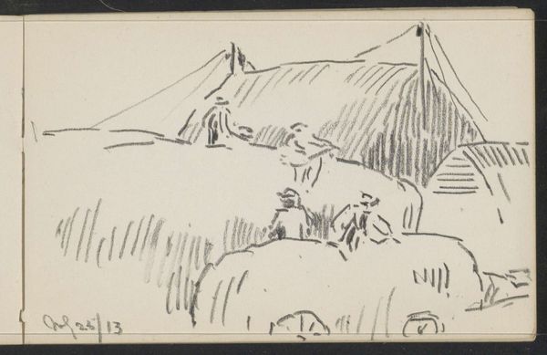 This landscape with figures on a hay wagon was made in pencil by Alexander Shilling. You know, I think drawing is the most direct way to see the world – it's like thinking with your hand. Here, the lines are loose and sketchy, almost like he’s trying to catch a fleeting moment. Look at the way he's rendered the trees – just a bunch of quick strokes, but somehow you can feel the weight and the texture of the bark. And the hay wagon, piled high with hay and people, it's all rendered with these scribbly lines that suggest movement and energy. There's a real immediacy to the drawing, like he’s just trying to capture the essence of the scene before it disappears. Shilling reminds me a little of Van Gogh. Both artists are interested in the everyday, in capturing the beauty and the grit of the world around them, even in just a few lines. It's about finding the extraordinary in the ordinary, you know?
