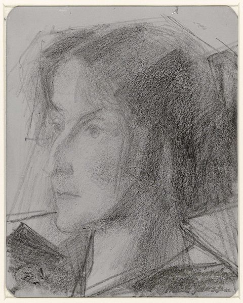 Curator: Here we have Umberto Boccioni's "Woman's Head" from 1911, housed right here at the Städel Museum. It’s a pencil drawing on paper, a striking example of his early Futurist explorations. Editor: The immediate feeling is one of raw energy, isn’t it? You can almost feel the graphite on the page. Look at the frantic scribbles—they convey so much tension and the artist's sheer restlessness. Curator: Absolutely. This sketch, while a seemingly quick study, carries the weight of the modern anxieties and dynamism that fueled Futurism. Notice how her features are not static; they’re fractured, as if capturing movement in a single image. Her weary eyes draw you in, and even though it’s just a sketch, the mood is incredibly vivid. Editor: The Futurist focus on speed, mechanization, and a break from the past… it makes me think about how these mass produced pencils, seemingly disposable, allowed for an immediate connection to the artwork. There's no slow oil painting here; just the rapid friction between pencil and paper to translate the fleeting impressions of the modern world. Curator: I see this figure as representative of the evolving perception of women in that era—caught between tradition and modernity, their roles were in a constant state of redefinition. The drawing isn’t just about her face; it captures the very essence of a woman navigating that period of transition. It makes me think about the layers of meaning embedded within seemingly simple representations of the female figure. Editor: It’s fascinating to see a study of the female form rendered through such a stark, almost brutal material process. Consider the context—Futurism was often loud, brash, even violent in its manifesto proclamations. That the delicacy of a portrait is achieved with the industrial pencil speaks to a more complex conversation of modern labor, social identity, and the materials available at the time. Curator: That's insightful. In viewing this "Woman's Head," we not only engage with Futurism's radical approach to form but also with the poignant human narratives captured within those dynamic lines. Editor: Yes. Boccioni used mass-produced tools to evoke both modernity and individual anxiety. I am left considering the dialogue of form, labor and the evolving place of women in early twentieth century culture.