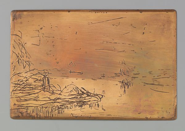 Editor: This is "River Landscape with Sailboat" painted by Antoon Derkzen van Angeren in 1926 using oil paint. It feels…sepia-toned, almost like a faded photograph. It looks quite abstract, and maybe a bit gloomy, but I’m curious – how do you interpret this work? Curator: Well, immediately I’m drawn to its historical context. Considering it was painted in 1926, what socio-political currents were influencing artistic expression at the time? The near-monochrome palette and the subdued brushwork, the "Dutch Golden Age" tag, might reflect a societal mood, perhaps a nostalgia for a perceived "simpler time" in the face of rapid industrialisation and post-war anxieties. Editor: That’s interesting. So, it could be a commentary on the changing landscape, both literally and figuratively? Curator: Precisely! Think about it: this work has been exhibited, viewed, and interpreted within the confines of galleries and museums. These institutions, too, play a part in shaping our understanding of the image. It makes one wonder who chose it for the gallery and why. And more important - who bought it! Were there other artworks from the same period which tackled the new landscapes brought by the societal and industrial innovations, making Angeren chose instead to reflect back at tradition? What statements might be done for or against this social turn? Editor: That’s a perspective I hadn’t considered. I was focused on the landscape itself, the suggestion of the sailboat on the horizon. Curator: But how does that landscape function, beyond its literal representation? Consider its public role – how it presents ideas about the natural environment and our relationship to it. Is this "golden age" representation just appealing to certain viewers for economical reason or does it involve a deeper appreciation of times gone? What imagery could be deemed fit for social commentary during this particular point in history? Editor: This makes me wonder how audiences at the time received this compared to today’s audience! Curator: Exactly! Our dialogue here, like every other encounter with art, shows that the work never speaks just for itself. Thanks to our reflection, it becomes a dialogue that helps us perceive its social context! Editor: It also reveals to me my limited appreciation for that context. Definitely gave me something to think about.