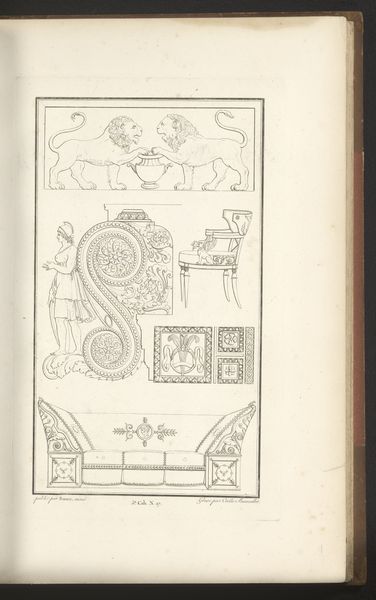 This print titled 'Dancing Women and Sarcophagus' is by Cécile Beauvallet. The composition is structured into distinct registers, each presenting a different classical motif rendered in precise linear detail. There's a frieze of dancing women evoking a sense of rhythmic movement. The linear precision and the repetition of forms create a visual cadence. Below this, the sarcophagus suggests themes of mortality and remembrance. The eagle emblem, framed within geometric borders, conveys power and authority. Beauvallet’s formal arrangement reflects a broader historical interest in classical antiquity. The careful balance and symmetry point to the Enlightenment's rational ideals. The print also explores how these classical forms might function in a modern context. Beauvallet prompts us to consider how we engage with the classical past, not merely as a static relic, but as an active participant in contemporary discourse.