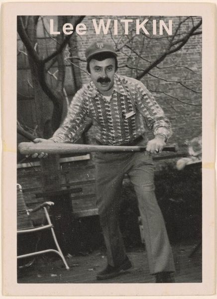 Mike Mandel made this photograph, C.J. Pressma, as part of a baseball card series. It's a small, intimate piece, rendered in black and white, which immediately gives it a sense of timelessness. The grey scale here flattens the image and brings a tactile quality to the fore. What strikes me most is the way Mandel uses light and shadow to sculpt C.J.'s face and form. Look at the way the light catches the brim of his cap, casting a shadow that veils his eyes, creating an air of mystery. The high contrast emphasizes the stubble on his face and the texture of his shirt. The slight graininess of the photograph adds to this sense of palpable reality. It's almost like you could reach out and feel the texture of the paper. This makes me think of other photographers, like August Sander, who also sought to capture the essence of everyday people through portraiture. Like their work, Mandel's image isn't just about the subject; it's a meditation on representation itself, on how we perceive and interpret the world around us. The ambiguity here is wonderful.