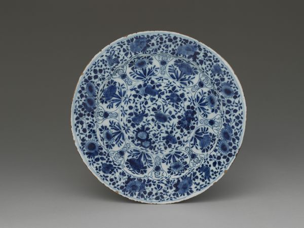 Editor: This "Dish," crafted in the late 18th century from porcelain, reminds me of grandma’s old china. I notice how each panel frames a different iteration of botanical themes, like the butterflies flitting among the flowers. It gives me a feeling of quaint serenity. What catches your eye about this decorative art piece? Curator: That’s lovely! Quaint serenity... It’s interesting how objects whisper across time, isn’t it? To me, beyond the pretty flowers, I see a little stage where cultures met. This "Dish," with its Asian artistry rendered in porcelain, whispers of global trade routes, and how patterns and ideas leap across continents. Have you thought about how porcelain becomes almost synonymous with "fine china"? Editor: That’s true! I was focusing on the flowers and butterflies but missed the bigger story of trade! Was blue and white pottery a typical commission? Curator: Precisely! And that blue and white color scheme was itself incredibly popular! Do you wonder why? It's beautiful of course, but what about its functionality? It became iconic because of its affordability of the color...But beyond that, imagine being a 18th century artisan adapting traditions for patrons across continents. A little act of translation across cultures, etched onto a dish, if you like! Editor: That really changes how I look at it! I am seeing global collaboration when looking at the motifs. Curator: Exactly! Now, every time I see blue-and-white porcelain, I think of a delicate story about connection. Editor: Me too. I won't forget how an artist mixes and matches ideas with global influences for future work!