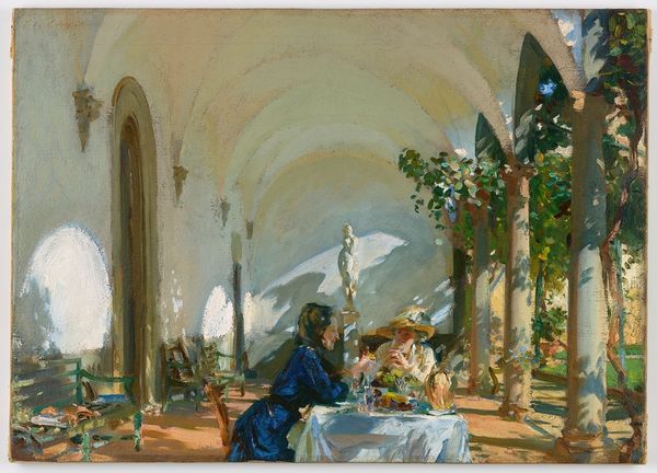 Villa Torre Galli The Loggia is a painting by John Singer Sargent, which depicts a covered terrace, probably made with oil paint. Look at how Sargent builds the architecture and figures with these loose strokes and this warm, limited palette. It feels casual, like it all came together at once, but I bet he reworked the thing a bunch. It’s that sense of immediacy which is really interesting. I'm drawn to how the muted tones of the interior space contrast with the vibrant greens in the open space on the right. The thickness of the paint varies. In some areas, it's thinly applied, allowing the canvas to show through, while in others, like the vines, it's built up with thicker strokes. There’s something of the great Spanish master, Velázquez in Sargent’s brushwork. Both artists have a way of suggesting form with just a few strokes of paint. Ultimately, painting is a conversation across time, an ongoing exchange of ideas.