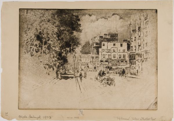 Félix Hilaire Buhot made the etching "The Place des Martyrs and the Jailhouse Tavern," sometime in the late 19th century, a period of significant social and political change in France. Buhot situates us in a bustling Parisian street scene, capturing the city's energy. The work is more than just a depiction of urban life; it is a window into the complex interplay of French society. The presence of "the Jailhouse Tavern" points to the existence of marginalized communities, inviting us to consider the social stratification of 19th-century Paris. Buhot develops an alternative narrative, diverging from the romanticized portrayals of Paris that were common at the time. Instead, he presents a view that hints at the disparities and tensions beneath the surface of Parisian life. The emotional weight of this piece lies in its quiet acknowledgment of the unseen, inviting reflection on the stories of those who occupied the margins of Parisian society.