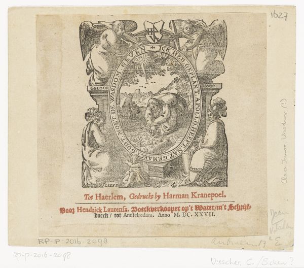 Antoon Derkinderen created this drawing, 'Het tweede bedryf,' with pencil and watercolor. The artwork presents an elaborate, ornamental design reminiscent of medieval illuminated manuscripts, characterized by its symmetrical layout and compartmentalized imagery. The composition is divided into distinct sections, framed by an intricate border. On the left, a figure stands rigidly, holding a shield and spear, set against a patterned background. To the right, a dynamic scene of ships sailing through turbulent waters unfolds. The limited palette—primarily muted reds, greens, and browns—creates a subdued, harmonious effect. The artwork invites us to consider the interplay between text and image, challenging conventional boundaries. The decorative elements and symbolic figures reflect the artist's engagement with cultural and historical narratives. The artwork embodies a formal structure but also serves as a vehicle for exploring themes of power, identity, and historical memory. Its visual structure invites a layered interpretation.