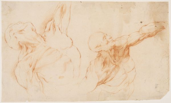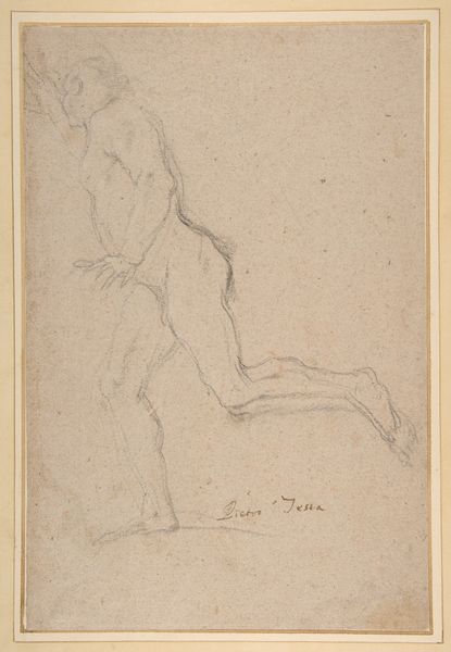 Giovanni Battista Pittoni made this drawing of a Kneeling Page with Tray at an unknown date, using red chalk on paper. Pittoni worked in Venice, a city renowned for its lavish displays of wealth and power in the 18th century. Venice was a Republic with a complex social hierarchy that valued appearances. Aristocratic families employed many servants to maintain their luxurious lifestyles. Paintings and drawings that depict servants, such as this one, reflected that social structure. The page's kneeling posture emphasizes his subservient role, highlighting the social norms of the time. Red chalk, a popular medium for preparatory sketches, allowed artists to quickly capture figures and compositions. To fully understand the context of Pittoni’s work, we can examine Venetian history, costume books, and inventories of aristocratic households. This kind of research allows us to appreciate how art both reflects and shapes the social hierarchies of its time.
