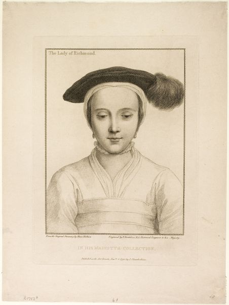 Francesco Bartolozzi made this stipple engraving of Edward, Prince of Wales, sometime around 1787. It reproduces an earlier drawing by Hans Hysing that was part of King George III’s collection. This print gives us insight into the cultural importance of royal portraiture in late 18th century England. The image was initially produced as a unique drawing, but its reproduction as a print allowed for wider circulation and consumption, particularly amongst the middle classes, who might aspire to mimic the fashions and values of the aristocracy. The inscription "In His Majesty's Collection" suggests that this print was intended to celebrate the king's patronage of the arts and to promote a sense of national pride in the royal family. To further understand its historical context, scholars might consult period newspapers, diaries, and letters, as well as conduct research into the printmaking industry and the market for royal portraiture. Understanding the circulation of imagery is critical to understanding the social structures of the time.