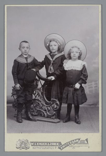 Evert Johan van der Horst captured this photographic portrait of an unknown woman, presumably with her two sons. The studio portrait offers a glimpse into the conventions and constraints of early 20th-century life, especially for women. There’s a palpable sense of formality and constraint. The woman's stern gaze and the stiff poses of her sons speak to the limited roles afforded to women during this period, primarily as caregivers and upholders of social decorum. The sons’ matching sailor suits reflect the era's emphasis on uniformity and adherence to social norms. Yet, the woman's direct gaze hints at a quiet strength, suggesting a complex interiority beyond the prescribed social role. The photograph evokes a sense of longing and resilience. It serves as a poignant reminder of the sacrifices and untold stories of women who navigated the complexities of motherhood within a restrictive societal framework.