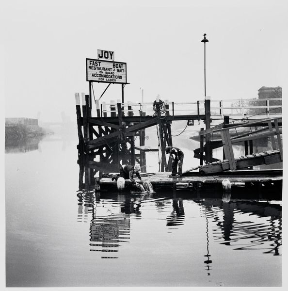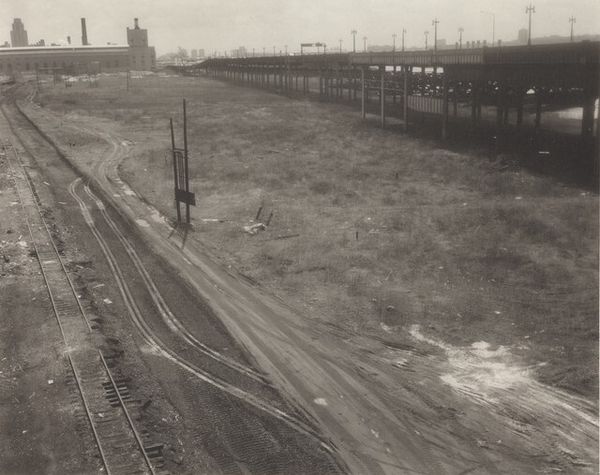Curator: The immediate impression is stark, a little bleak. There's something incredibly melancholic about this street scene, with its muted tones and the lingering puddles reflecting a world under construction, or perhaps, deconstruction. Editor: Indeed. This is Madoka Takagi’s 1990 black and white photograph, "Corona Queens". The photograph documents a streetscape in the Corona neighborhood of Queens, New York. I think that you touched upon key qualities inherent in documentary photography. Curator: Beyond the simple recording of a place, I’m struck by what seems like a palpable sense of neglect and perhaps abandonment. Even the high-rise cranes in the background feel somehow… defeated. How does Takagi engage with the public role of imagery here? Editor: Well, during that period, New York City faced significant social and economic challenges. It serves as a critical visual document of a specific socio-economic moment. Takagi draws attention to urban spaces often overlooked or misrepresented in mainstream media. It's also important to consider how images like these contributed to discussions around urban planning, resource allocation, and the lived experiences of marginalized communities. The very act of documenting is, of course, a political statement. Curator: The composition is masterful, drawing the eye along the muddy street, littered with debris, toward a vanishing point somewhere between those skeletal cranes. It's not just a photograph, but a statement. The lack of human presence only amplifies the feeling. Is it a critique? An observation? Or something else entirely? Does the title "Corona Queens" reinforce the feeling of the majestic laid low by hardship, a once proud territory perhaps impacted by societal problems? Editor: That reading seems right. There's an ambiguity that avoids simple pronouncements. Perhaps, in foregrounding the often unseen reality, Takagi invites viewers to critically consider the power structures that have contributed to it. The composition echoes back to practices in constructionism that were concerned with political activism. The artist highlights social issues to try to improve lived experience for communities that face discrimination and marginalization. Curator: Ultimately, I find myself questioning my own position as a viewer – what am I doing looking at someone else's hardship frozen in monochrome? Is this image intended as a mirror, forcing a privileged viewer to examine his or her complicity? Editor: Yes. That's where its power lies, isn't it? The capacity of art to implicate us, to challenge us to look beyond the frame and question the world around us, is profound. This photograph encapsulates that potential beautifully.