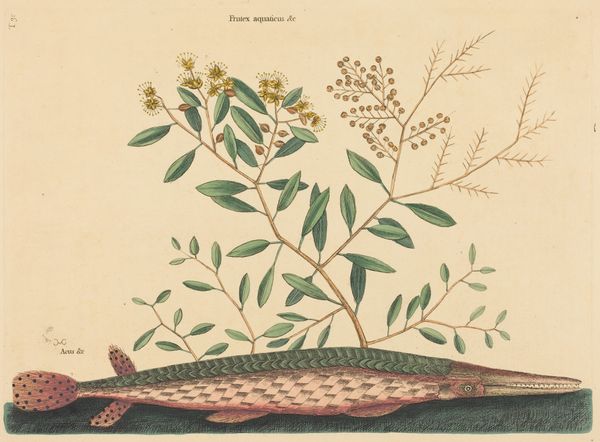 Mark Catesby, an English naturalist, created this print of "The Globe Fish" during his expeditions to the Americas in the early 18th century. His detailed illustrations were part of a larger project to document the flora and fauna of the New World. Catesby straddled the line between scientific observation and the colonial gaze. He depicted a globe fish alongside native plants, reflecting both an interest in natural history and the impulse to classify and catalogue the resources of newly ‘discovered’ lands. How does Catesby negotiate his identity as an explorer, a scientist, and a participant in the colonial project? This image also raises questions about representation and knowledge. Catesby's prints served as a primary source of information about the natural world for many Europeans. But we should ask ourselves, whose perspectives were privileged in these depictions, and whose were left out? The delicate rendering of the fish and plants invites us to contemplate the intersection of art, science, and colonialism in shaping our understanding of the natural world.