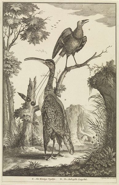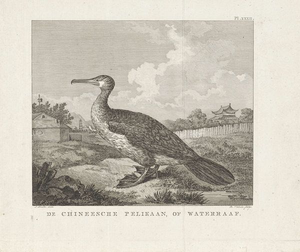 Reinier Vinkeles created this engraving of a bird on a tree stump in a landscape during the late 18th or early 19th century. During this time, Europe’s colonial endeavors often intersected with scientific pursuits. Images like this one served not only to document exotic wildlife, but also to categorize and claim ownership over the natural world. The bird, labeled in Dutch as "The Javanese Pheasant with the Fiery Back," embodies the complexities of cultural exchange and scientific exploration during the Age of Enlightenment. Consider how the act of depicting this creature reflects a desire to capture and control the natural world. The detailed rendering, while seemingly objective, carries the weight of colonial power dynamics. There’s a tension here, between the allure of the exotic and the underlying motives of imperialism. It invites us to reflect on the gaze through which we perceive the world, and the stories we tell ourselves about progress and discovery.