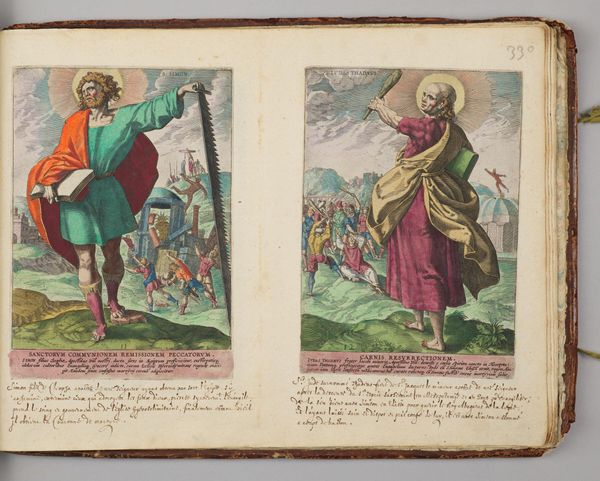 Editor: These two engravings, "Christ" and "Saint Peter," by Anton Wierix II, are striking. I'm fascinated by the contrast in their expressions, almost stoic. What do you make of the symbolism here, especially with the cross and keys? Curator: Ah, yes, the weight of faith, perhaps? Wierix uses these symbols, the cross and keys, not just as identifiers, but as burdens, or rather, responsibilities. Notice how Christ's gaze is almost internal, while Peter's seems to meet ours with… what? A challenge? A plea? Editor: I hadn't thought of it that way, but I see it now. It's less about divine power and more about human accountability. Thanks! Curator: Exactly! And that, my friend, is often where art truly sings – in the quiet whispers of human experience behind the grand narratives.