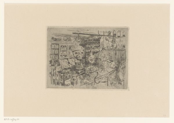 Editor: This is "Huizen aan de haven van Enkhuizen," or "Houses at the Port of Enkhuizen," a linocut print by Wijnand Otto Jan Nieuwenkamp, possibly created between 1910 and 1926. It's quite an intriguing scene... a quiet, almost secretive glimpse into everyday life by the water. The light feels muffled, filtered through the structures. What do you see in it? Curator: It breathes a certain atmosphere, doesn’t it? Like a memory half-recalled. The linocut, a relief printing technique, gives a particular character, that combination of boldness and detail. Notice how the artist uses lines – thick and thin, clustered and sparse – to evoke not just form, but also feeling. The slightly tilted angles, the laundry hanging as if frozen mid-air… I sense a world caught between the picturesque and the quietly melancholic. Does it speak to you that way as well, or am I just projecting my own romantic soul onto it? Editor: No, I definitely feel the melancholic aspect, too! But the hanging laundry gives it a relatable feel. I wonder what daily life was like there. Curator: I suspect the artist wanted us to wonder. Nieuwenkamp travelled extensively. He sought places untouched, or perhaps touched differently, by the relentless march of modernity. He wasn't simply documenting; he was seeking a spiritual resonance. Maybe the laundry flapping in the breeze isn’t just laundry; it’s a flag of the ordinary, a humble statement of life persisting. What I find interesting, too, is the viewpoint – not grandiose or panoramic, but intimate. Editor: It’s like we are peeking in, almost. Thank you! I’ve noticed so much more! Curator: Absolutely! The real treasures often lie beneath the surface, just waiting for someone curious enough to dig. It's a testament to art's potential to evoke deeper introspection beyond mere aesthetics.