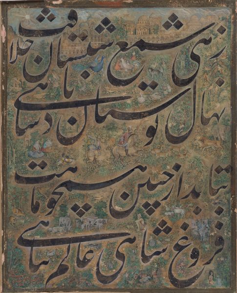 Curator: This exquisite "Calligraphy Exercise" is attributed to Ahmed Karahisari. It's executed in ink on paper. Editor: It looks so spontaneous, almost chaotic at first glance, but then you notice this undercurrent of geometrical order. The contrast between the black ink and the cream-colored paper creates an engaging visual experience, doesn't it? Curator: Indeed. The sweeping calligraphic forms are not just decorative; they carry deep cultural and spiritual weight. Think of calligraphy in Islamic art as embodying divine speech itself, rendered visible. The act of creating it becomes a devotional practice, and the abstract forms symbolize a connection to something beyond the immediately visible. Editor: That makes me wonder about the materials: the particular ink used, the sourcing of the paper. Each decision a reflection, perhaps, of available resources and the cultural value placed on the creation of sacred texts. We have here labor, material, skill intersecting to form this exercise. Was the paper specially prepared? What about the quills they were using? I bet it's quite a story! Curator: Certainly. The materials would contribute to the lasting value of such work, meant for both worldly appreciation and transcendent contemplation. And the placement of these stylized arabesques? They call to mind the dance between control and surrender during its creation. It serves to activate and awaken in ways both psychological and even deeply spiritual. Editor: A good point. But considering its existence as an "exercise," that devotional aspect you described becomes all the more interesting. The laboring of crafting, of honing technique with very specific tools and materials transforms an exercise into a possible window for contemplating skill as prayer and form. Curator: Exactly! In this sense, it isn't "just" practice, it's something of greater value. It is where meaning originates within its intended cultural context. Editor: Thinking of this in terms of labor, and of skill-building processes…it reveals an artist's engagement with materials and also allows insight into both cultural tradition and personal development. Curator: And that, perhaps, is why this "exercise" continues to move us across time and culture. It speaks to something deeply and essentially human. Editor: It transforms mundane, even quotidian objects through labor, into something much bigger. It invites you to slow down, to really examine not just its aesthetics, but also how it came to be, who made it, and under what circumstances.