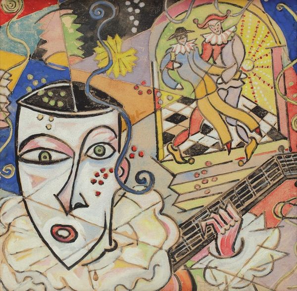 Editor: Here we have Picasso’s "Deux personnages," an oil painting showcasing the artist’s Cubist style. It strikes me as quite intimate, perhaps even melancholic, with those downturned eyes and muted colors. What do you see in this piece? Curator: I see a conversation, or rather, layers of conversations. Not just between these two figures, but between Picasso and the shifting identities within early 20th century Europe. The flattening of form, the geometric breakdown - it echoes the societal fragmentation after World War I. Look at how the faces are rendered, almost masks. Editor: Masks? Like concealing something? Curator: Exactly! Think about the evolving roles of women, the anxieties around sexuality, the societal expectations stifling individual expression. The fractured composition embodies the breaking down of traditional societal structures. What is intimacy if not a negotiation of selves? Perhaps the document they are reading becomes a metaphorical script of expectations. Do you see a sense of tension? Editor: I do now, especially with how the colours seem almost contradictory – warm yet also muted. I didn’t realize how much historical and societal context could be embedded in an abstract painting. Curator: Absolutely! It’s a powerful reminder that art is rarely created in a vacuum. Every brushstroke, every color choice, it all speaks to the complexities of the world around the artist. And by extension, to ourselves. Editor: That definitely gives me a new appreciation for approaching art through a critical lens.