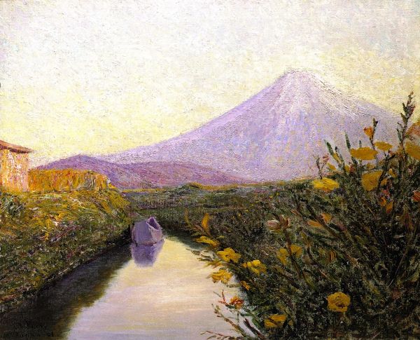 Childe Hassam made this painting of Mount Hood with oil on canvas, and it's just dreamy. Look at those strokes, kind of choppy and loose, like he's trying to catch a feeling more than a photograph. The colours, though! He’s using all these blues and whites, and just a touch of yellow, so the whole thing feels cool and distant, but somehow still warm and inviting. I love how the strokes of colour feel so physical, almost like you could reach out and touch them, but then the scene itself is so far away. It's a dance between being right here and floating off into the distance. Notice the dark blues at the bottom, and how they create an anchor for the mountain, making it feel even bigger. Hassam's work, in general, is like a conversation with the French Impressionists, but he's doing his own thing, trying to capture the light and the feeling of a place. It's like he's saying, "Hey, art isn't about copying what you see; it's about how you feel when you see it."