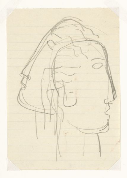 Curator: Here we have a design, created in graphite and pencil around 1935-1940, for a bookplate, an "Ex libris voor J. Slagter," attributed to Leo Gestel. Editor: It's more of a quick sketch, really. Sort of hesitant, isn't it? You can almost feel the pencil dancing across the paper. Curator: I think the feeling of it being tentative makes it more precious, really. As an *idea*. Notice how Gestel overlays two profiles within this rectangular framework. You have a very traditional "Ex Libris" inscription, but somehow defamiliarized. The portraits... do they suggest anything about the book's owner? Editor: What catches my eye is the bottom portion, with 'Slagter' in reverse, looking almost branded. I'm curious about the labor involved—the time Gestel dedicated versus what Slagter likely paid for such a personalized mark of ownership. Was this a casual commission, a gift between comrades, or something more formal? What kind of paper did they have to use at the time? All I see now is where material value lies in art. Curator: I'd wager it's somewhere in between. It feels like the product of a specific social world. It's clearly not meant to be mass-produced. You can feel a strong whiff of that in-between-the-wars period. Editor: It's the reverse printing too. Thinking about having to carve out this name perfectly reversed from looking in the mirror feels like labour. Did Gestel embrace this kind of artisanal approach, or was he trying to elevate the material conditions here in relation to artistic expression? Curator: It is intriguing. I think it tells you so much with so little; you get the impression of a man with certain gravitas, certainly intellectual… but there is also some element of the "modern man" hinted at. And, for me, it's also interesting how it embodies the transition period in his work around that time... before he became even more radically abstract. Editor: Well, that adds an interesting layer, knowing he shifted so radically after. Perhaps this was a subtle commentary, even unconsciously, on the changing landscape of artistic labor. Thank you for expanding my view here. Curator: A genuine pleasure. Thank you, likewise!