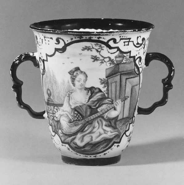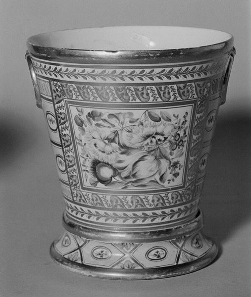 This silver beaker was crafted by Al'derman Petrov Fiodor in the late 18th century, presenting an interplay of decorative opulence and narrative intrigue. The beaker’s structure is defined by an embossed central scene enclosed within a scrolling, foliate cartouche, all set against the smooth, reflective silver surface. The composition focuses attention on the figures enacting a scene within a boat. Above, Cyrillic text is carefully etched, adding another layer to the artwork. The reflective quality of the silver enhances the intricate detailing, yet also subtly distorts the surrounding environment, integrating the beaker into its space. The artist invites us to decipher the narrative and appreciate the craftsmanship. The beaker functions as a microcosm of cultural and artistic values, reflecting the period's aesthetic preferences and philosophical underpinnings. Its complex semiotic layering creates a rich ground for ongoing interpretation.