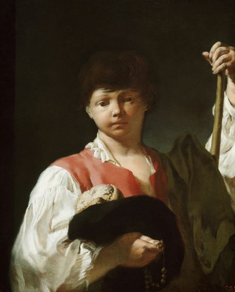 William Bouguereau painted this portrait of an Italian boy holding a crust of bread, probably in 1874. The artist uses light to gently illuminate the boy's face, drawing our attention to his wistful expression. Bouguereau was a master of academic realism, a style deeply rooted in classical ideals. Notice how the smooth, almost porcelain-like finish of the boy's skin contrasts with the rough texture of the bread. This contrast invites us to think about the boy's social standing, as the piece of bread suggests his poverty, and his gaze evokes feelings of introspection. The composition itself is carefully constructed; the boy is centrally placed, with the dark background serving to highlight the lighter tones of his skin and clothing. But look closer and you might notice that the romantic portrayal masks deeper questions about class, representation, and the idealized image of childhood. Ultimately, Bouguereau's work is a complex play of light, texture, and form.