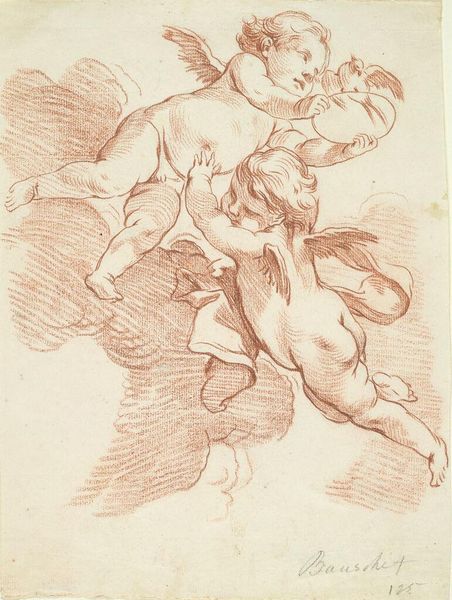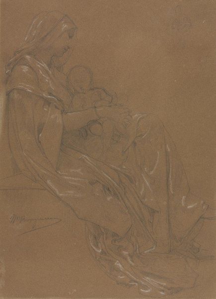 Charles Haslewood Shannon created this drawing, Mother and Children, using sanguine crayon on paper. The composition immediately draws our attention to the interplay between the figures, rendered with a delicate yet assured line. Shannon’s use of sanguine crayon imbues the scene with a warm, intimate atmosphere, softening the contours and creating a sense of unity. Notice how the lines vary in thickness, suggesting both form and movement. The mother’s downward gaze and the child’s supine pose create a visual field of emotional depth. The drawing’s structure invites us to consider the broader cultural contexts of domesticity and motherhood. Through the careful arrangement of figures and the economy of line, Shannon evokes a timeless scene of maternal care. We are left to contemplate the subtle yet profound ways in which form shapes our understanding of human experience.
