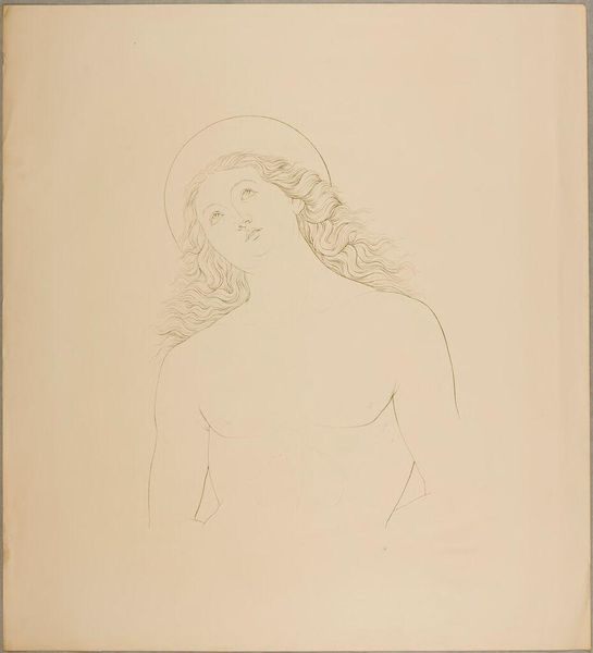 Curator: This is Eric Gill's "Portrait of a Lady," held in the Tate Collections. It's a simple line drawing, quite small, just 175 by 114 millimeters. Editor: It has a classical feel, doesn’t it? The woman's profile, the simple lines, evoke a sense of timelessness. But there's also something almost austere about it. Curator: Gill’s Catholic faith and interest in medieval art deeply influenced his style. He aimed for a purified, essential form, stripping away unnecessary details. Think of the iconographic tradition, simplifying the figure to its core essence. Editor: Yes, but Gill's work often sparked controversy. His views on the role of art in society and his personal life complicated interpretations of his art. This image feels like a deliberate attempt to bypass those complexities. Curator: Perhaps. The lack of ornamentation emphasizes an inner dignity. The hair, so meticulously drawn, becomes a kind of halo. Editor: Ultimately, the portrait remains enigmatic. It invites contemplation on beauty, simplicity, and the complexities of artistic legacy. Curator: A very brief encounter into the play of public image and private personas. Thank you.