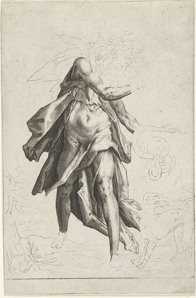 Frederick Bloemaert created this print, "Resting Soldier," sometime in the 17th century, a period marked by frequent military conflicts across Europe. Bloemaert offers us more than just a soldier; he gives us a glimpse into the human toll of war. We see a figure weighed down, not only by armor, but by the unseen burdens of conflict. Here, the soldier's rest is heavy with the implications of his duty. This image complicates the glorification of military service, inviting us to consider the personal cost of war. It is a moment of vulnerability amidst the pomp and circumstance, a quiet acknowledgement of exhaustion, and perhaps, disillusionment. What unspoken stories does this resting soldier carry, and how does his weariness speak to the broader narratives of power, sacrifice, and the human condition during times of war?