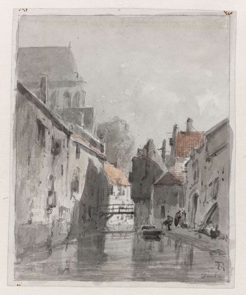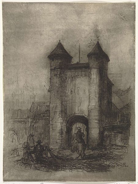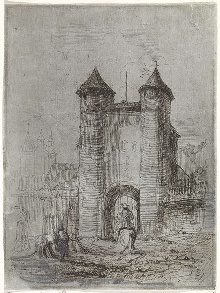Johannes Bosboom rendered "Gezicht op de Hoofdtoren te Hoorn" in shades of gray, using watercolor and graphite. Bosboom, living between 1817 and 1891, operated in a period where Dutch identity was being re-evaluated through its art and architecture. Here, the Hoofdtoren, or main tower, isn't just a structure; it's a marker of place, of Hoorn, and by extension, of Dutch civic pride. During Bosboom’s time, art often served to solidify national identity. This tower, depicted with careful attention to its historical details, embodies the strength and resilience of Dutch heritage. Bosboom’s choice to render this scene in monochrome evokes a sense of nostalgia and timelessness. The soft, muted tones invite reflection on the enduring qualities of the Dutch landscape and its cultural landmarks.