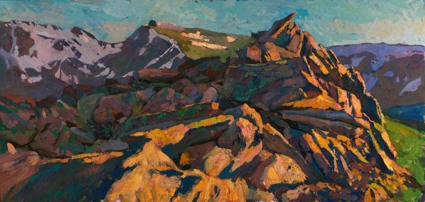 Edward Hopper made "Rocks and Shore" with oil on panel, and I like how you can really see the process. It feels like he was right there, wrestling with the paint to capture something immediate. The material quality of this piece is pretty interesting. The paint is applied so thickly, especially in the foreground. You can see the individual strokes, almost like he’s sculpting the rocks with the brush. Look at the way he layers the dark blues and blacks to create depth and shadow, and then BAM, a sudden burst of yellow highlights peeking through. It's like a little jolt of energy. I see a similarity with some of the work of Fairfield Porter; both had this way of finding the extraordinary in the ordinary, using paint to explore the emotional weight of a scene. Ultimately, art is like a big, ongoing conversation, and Hopper is definitely one of the more interesting voices.