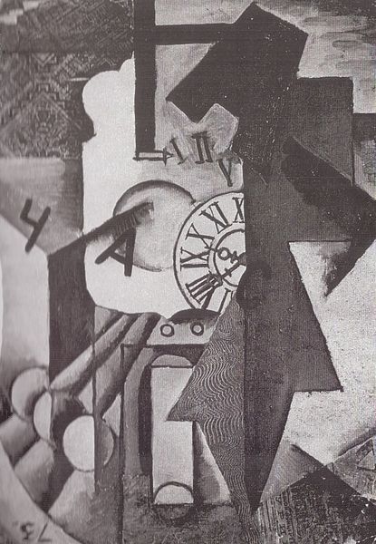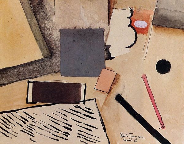 Lyubov Popova made this still life in oil on canvas, though we don't know exactly when. What grabs me first is how Popova builds up space through layers. Forms and letters jostle against each other. There's a real sense of looking *at* something rather than *through* it. It's like she's saying, "Hey, painting is a thing, a surface, a collection of marks." The grayscale palette throws the geometrical forms into sharp relief. I love the collaged newspaper; the way the typography flattens the scene feels very modern. It’s not just about representation, but about how we see and process information. It reminds me of some of Braque's Cubist explorations. This feels like a conversation, a back-and-forth about the nature of seeing and art-making itself. There is a radical ambiguity here that embraces multiple interpretations.