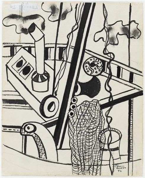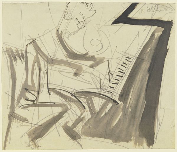 Curator: This is Werner Heldt's "Grand Piano with Window View" from the Harvard Art Museums. It's striking how Heldt uses stark black and white to create a sense of confinement. Editor: Confinement, yes, but also drama! The angle, the shadows... it feels like a stage set, waiting for the pianist, or perhaps a tragic diva. Curator: The high-contrast printmaking technique certainly amplifies the tension. Considering the socio-political context of Germany at the time, the lack of human presence speaks volumes about isolation. Editor: Absolutely. The piano, usually a source of joy, here feels heavy, burdened. Like a silent scream trapped in an elegant instrument. Curator: It also makes me think of the role of art during political turmoil, a place for private expression and veiled resistance. Editor: Well, that gives me a whole new chord to strike. Thanks for tuning my ear. Curator: The pleasure was all mine. Let's move on.