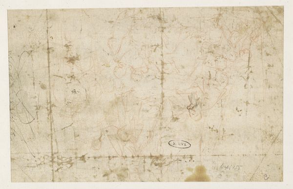Girolamo da Carpi made this drawing, "Sketches for Grotesque Wall Decorations," using pen and brown ink on paper. The composition is dominated by vertical lines that delineate architectural elements, creating a sense of structured space. The drawing presents a series of grotesque figures and ornamental motifs arranged in a decorative, frieze-like manner. Here, the artist uses the grotesque not merely as decoration but as a means to destabilize classical ideals of beauty and order. The figures, rendered with a delicate yet precise hand, blend human, animal, and plant forms, challenging fixed categories. Consider how da Carpi engages with the Renaissance fascination with classical antiquity while simultaneously subverting its norms. The grotesque, as a visual language, allows the artist to question the boundaries of representation, offering a commentary on the fluidity of form and the instability of meaning. This drawing stands as a testament to the power of art to challenge and redefine established aesthetic and philosophical values.