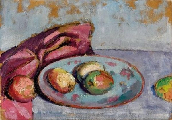 Constant Permeke created this painting of a still life with vegetables using oil paint. Observe how the composition is structured around the interplay between light and shadow, a dance that animates the mundane. The vegetables, rendered with thick impasto, are not merely depicted, but constructed through the very materiality of the paint. The earth-toned palette, punctuated by the vibrant reds and yellows of the produce, evokes a sense of the rustic. Permeke destabilizes traditional notions of beauty, elevating the ordinary to the extraordinary. The vegetables, typically subjects of sustenance, here become vehicles for exploring texture and form. Permeke challenges the viewer to reconsider their relationship to everyday objects and to find beauty in simplicity. The painting's formal qualities—its rough texture and earthy palette—reflect a broader artistic trend toward abstraction and an interest in the expressive possibilities of paint itself. The artist invites us to contemplate the meaning of representation.
